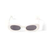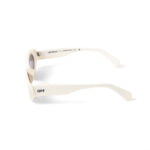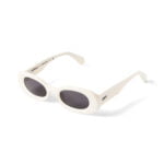 Occhiali da sole bianco in acetato con logo OFF bianco sull’asta. Montatura ovale e lenti grigio scuro con logo Off-White™ inciso