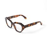 Occhiali da vista Havana in acetato con motivo Arrow tono su tono sull’asta. Montatura cat-eye e lenti con proprietà di blocco della luce blu.