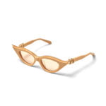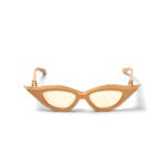 – Acetato giapponese con forma Cat-Eye scolpito di colore rosa con inserti in titanio color oro chiaro.